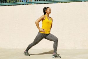 We are going to do Reverse Lunges. That means we are stepping back instead of forward. We are stepping back instead of forward because it is easier to keep your knee from passing your toe.
