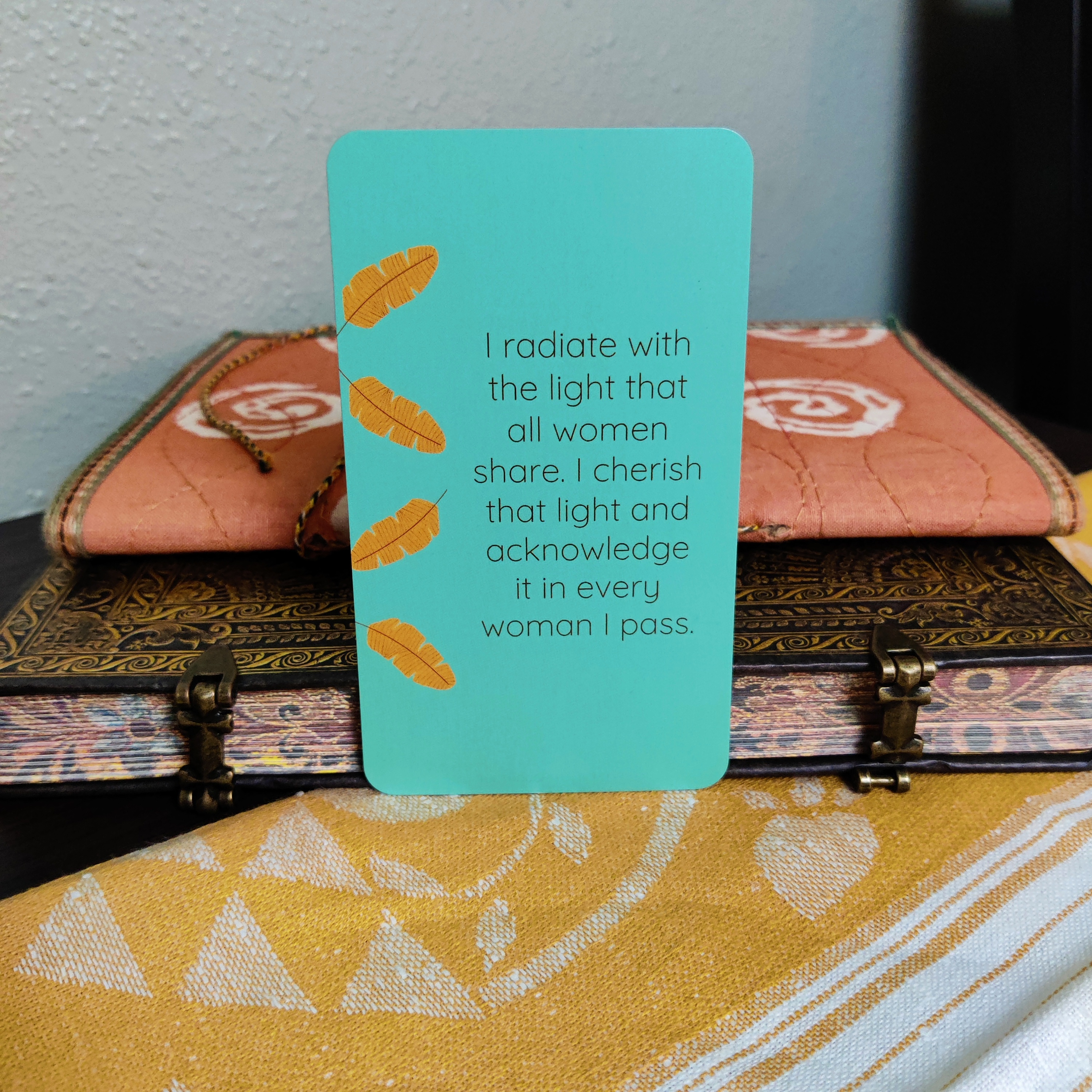 I love these cards! Every one of them has been an inspiring reminder to be easy on myself and have brought to light a whole new perspective. Whether it’s not fitting in with the current standard of beauty, going against my parent’s expectations, or just seeing my culture and habits in a new way. These cards are the wise and uplifting sayings I wish my grandma or mom had told me. Not only that, but they’re beautiful, well-made, and of great quality. I have them by my monitor to read whenever I want to take a break from my mind.