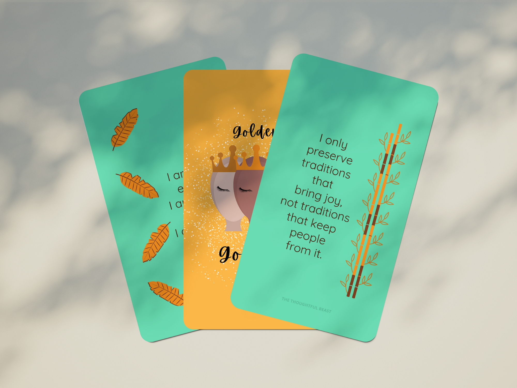 The Golden Goddess Affirmation cards hit close to home & are relatable to what it’s like to be raised in familial traditions that are hard to break through. It has been an empowering source & inspiring daily motivation to be better. They’ve also given me an eye opening look on how i am presently, have been in the past and growing up & how i want to be in the future.